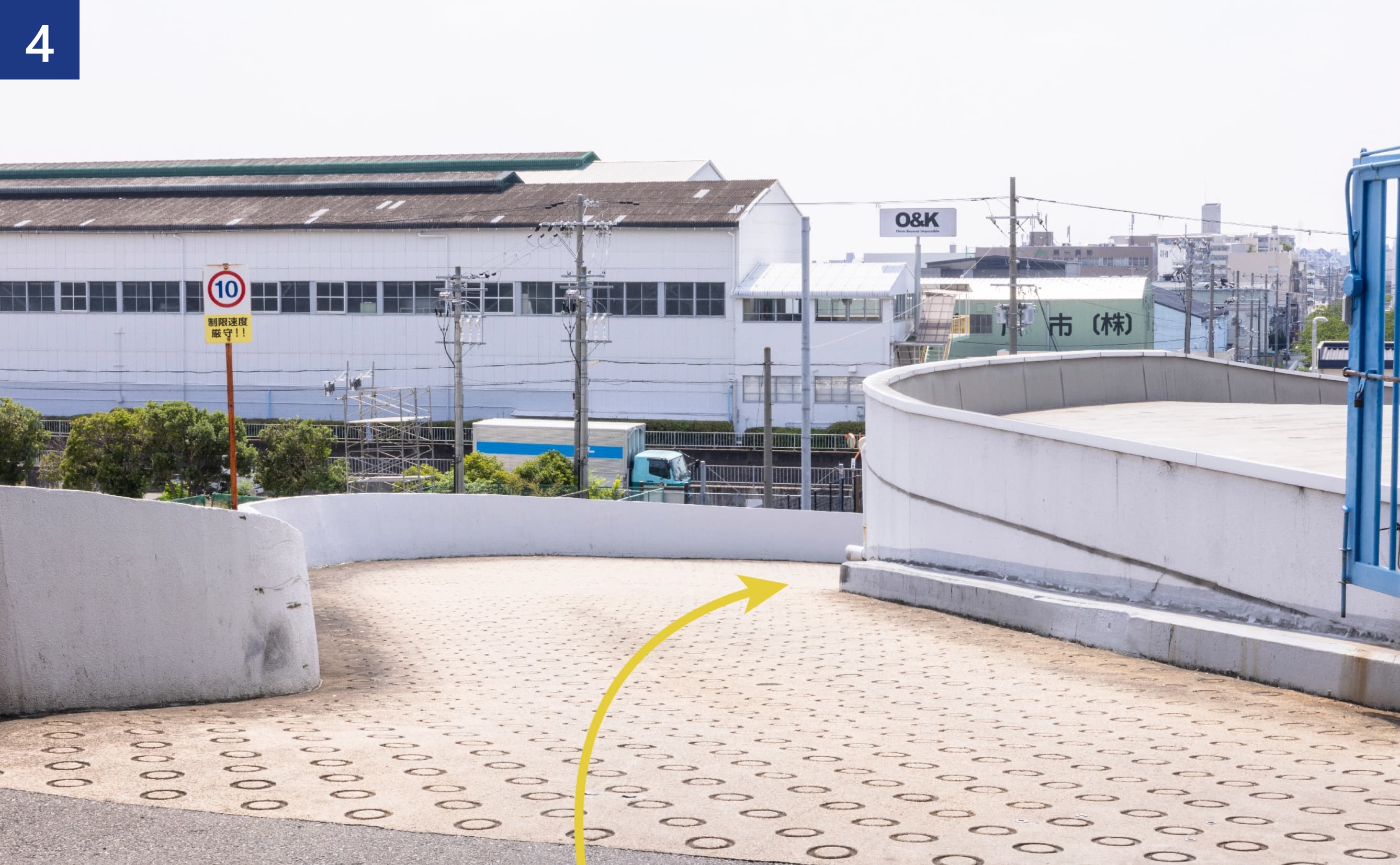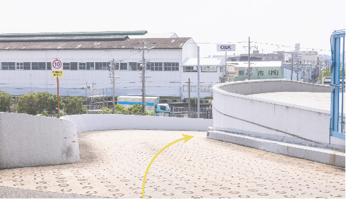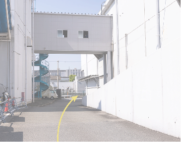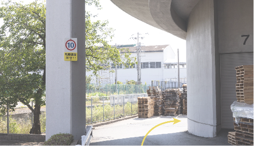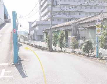 ■阪神高速道路・東大阪線水走出口を降りてすぐの信号を右折、