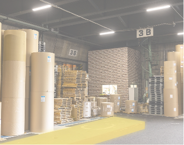 紙(平判)の保管、断裁加工、配送の物流拠点として、また新聞折込広告の仕分け、配送の拠点としても幅広く活用して頂いております