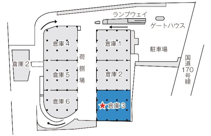 この恵まれた立地条件に加え、全天候型倉庫というスタイルは、皆様から評価を頂いています