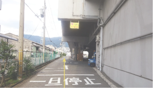 右側奥がサンケイ城北サービス様 リフトに注意して走行